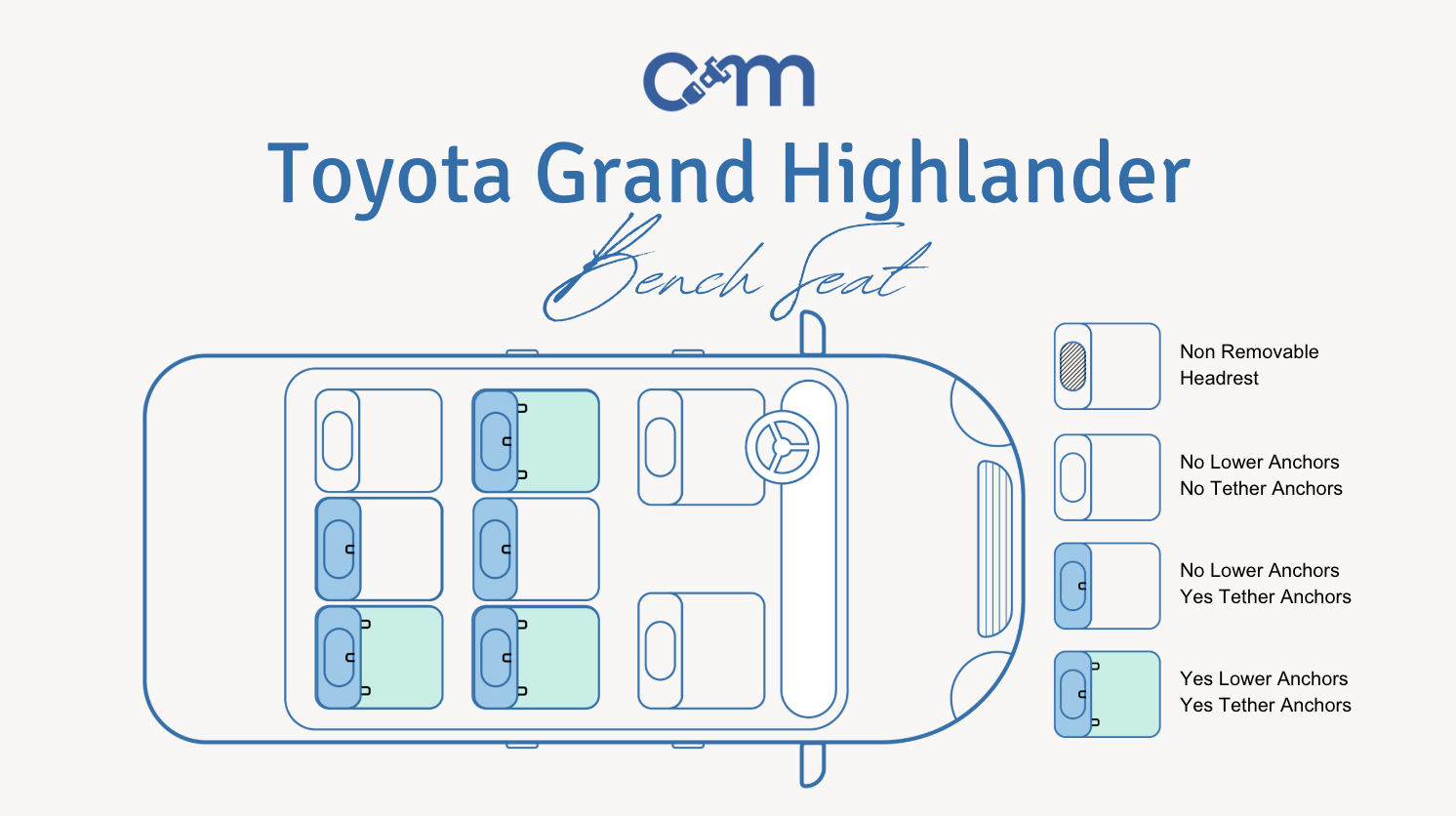 - Grand Highlander: Three sets of lower anchors across second and third rows (depending on trim), plus sliding second-row seats for better flexibility. Ideal for multiple car seats or three-across configurations.