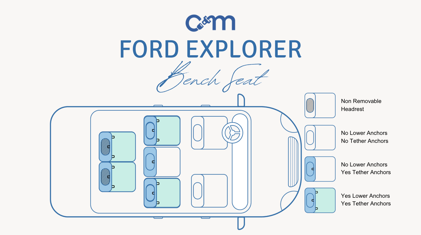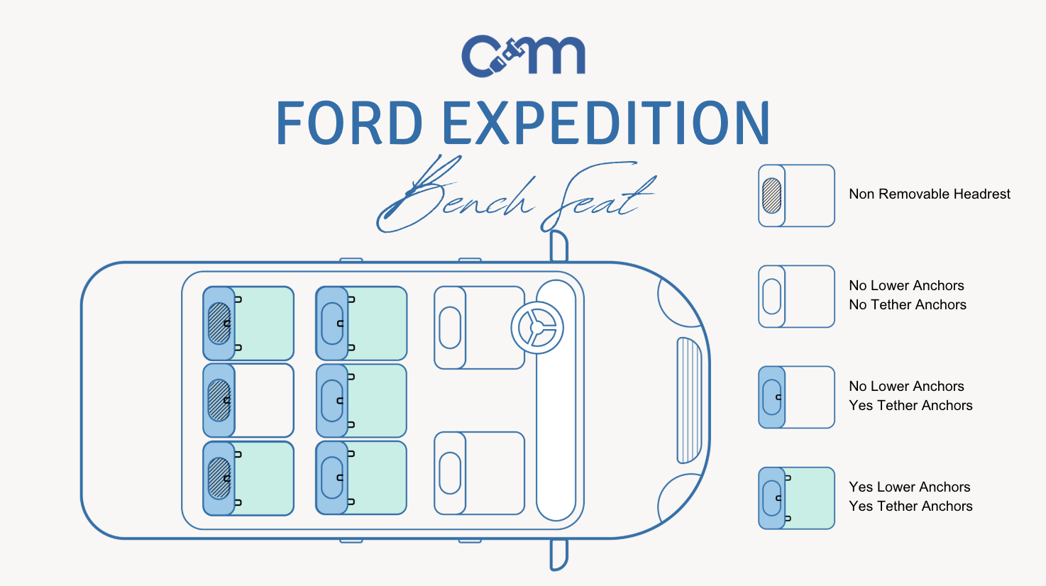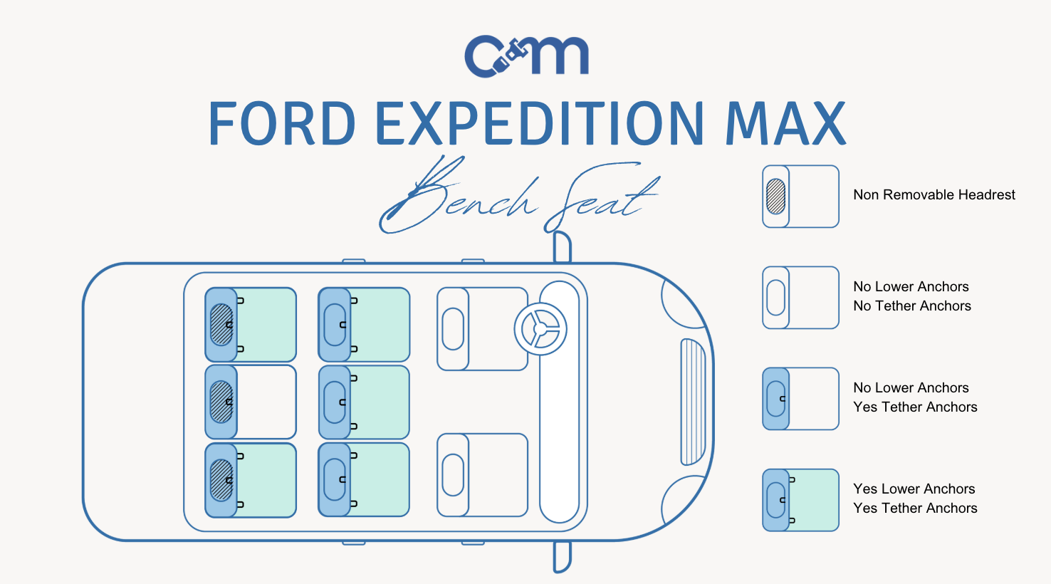 - Third Row: One set of lower LATCH anchors (passenger side) and one top tether anchor.